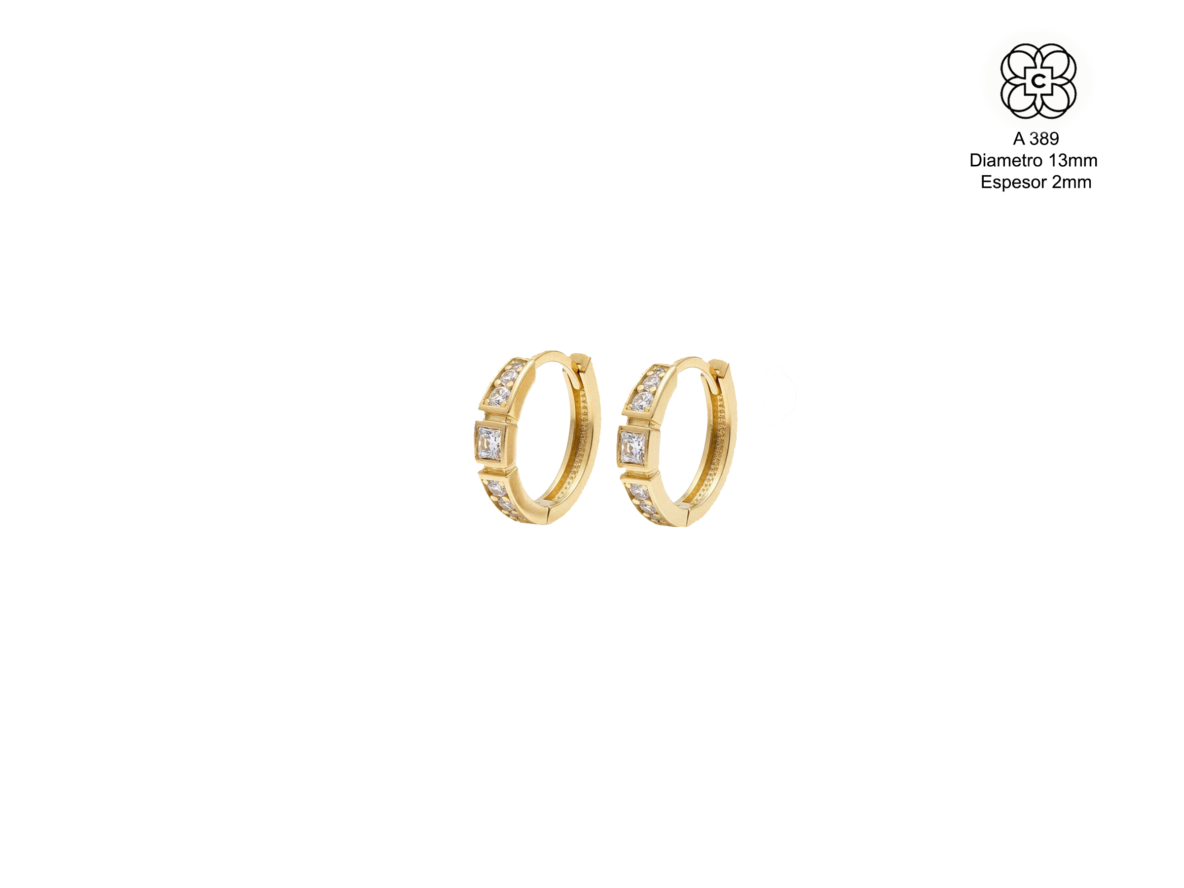 *Caravanas *Material: Oro 9K *Piedra: Circonita *Tamaño: 14 mm