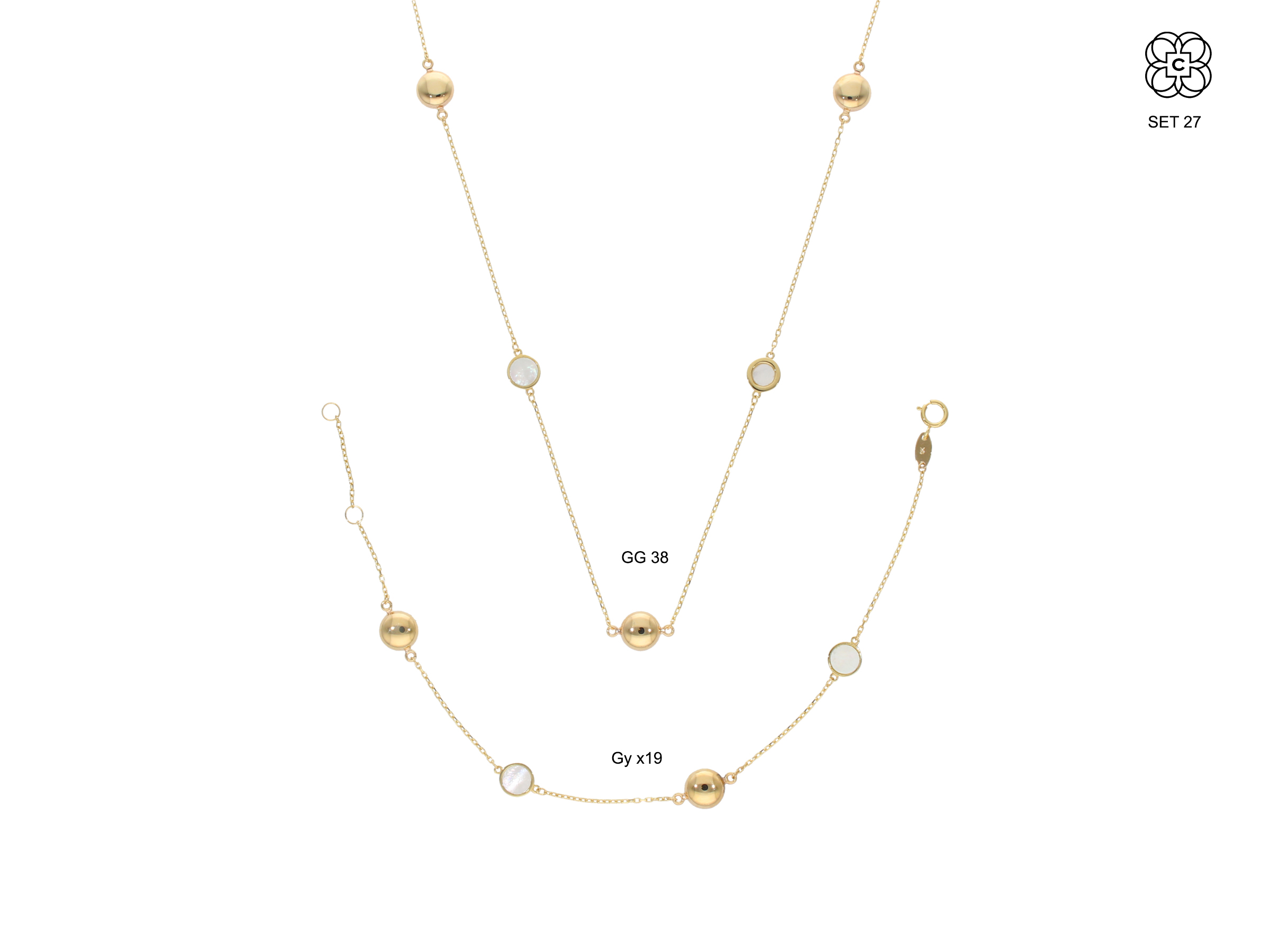 *Set *Material: Oro 9K *Color del Metal: Amarillo *Piedra: Nacar